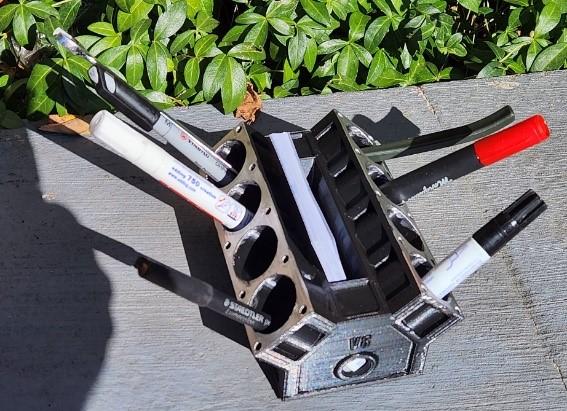 bloc moteur V8 porte stylo ,carte de visite